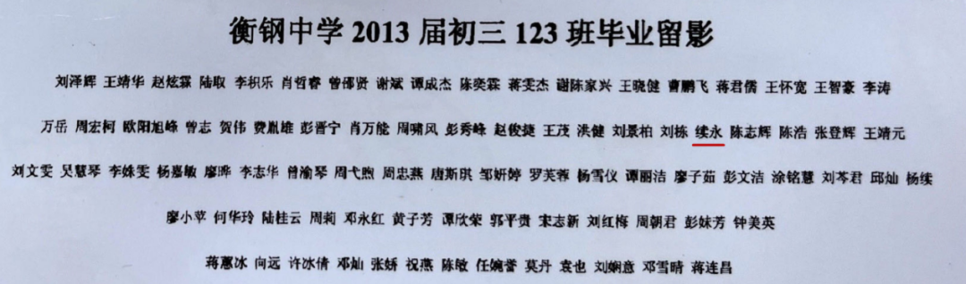 (衡阳市衡钢中学初中2013届初123班、高中2016届高130班校友续永)