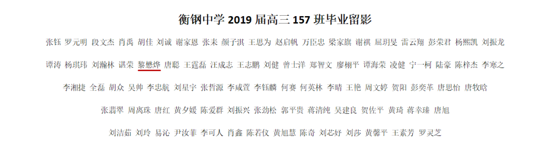 (衡阳市衡钢中学高中2016届高157班校友黎懋烨)