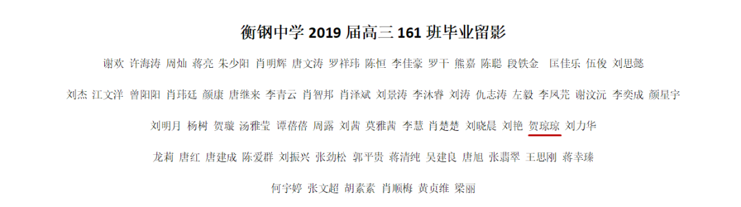 (衡阳市衡钢中学高中2019届高161班校友贺琼琼)