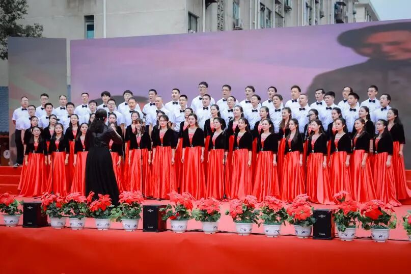 3、百年前,是铁血军人们为中国撑起来一片天。百年后,作为社会接班人的我们也将发出时代最强音。——衡钢中学教师合唱团带来大合唱《地道战》。