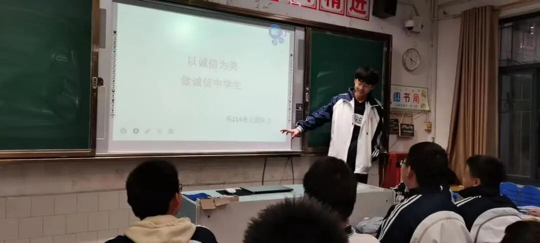 在班会课上,通过开展形式多样的活动,引导学生认识到诚信对人生的重要性,认识到诚信无小事,逐步引导学生增强诚实守信意识,践行诚实守信理念。
