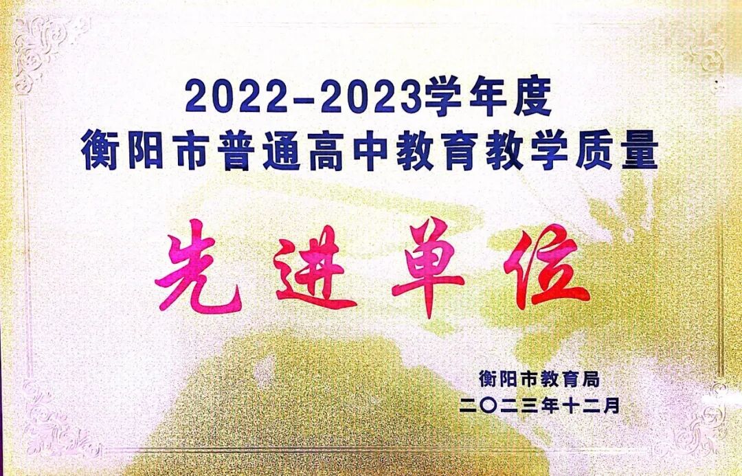 1月18日上午,2023年度衡阳市基础教育高质量发展工作大会胜利召开,大会全面总结了2023年度衡阳市基础教育所取得的丰硕成果,表彰了为衡阳教育作出突出贡献的单位及个人。衡钢中学再次被评为“2022-2023学年度衡阳市普通高中教育教学质量先进单位”,至此,衡钢中学已连续13年获此殊荣!开创了衡钢中学的新历史!