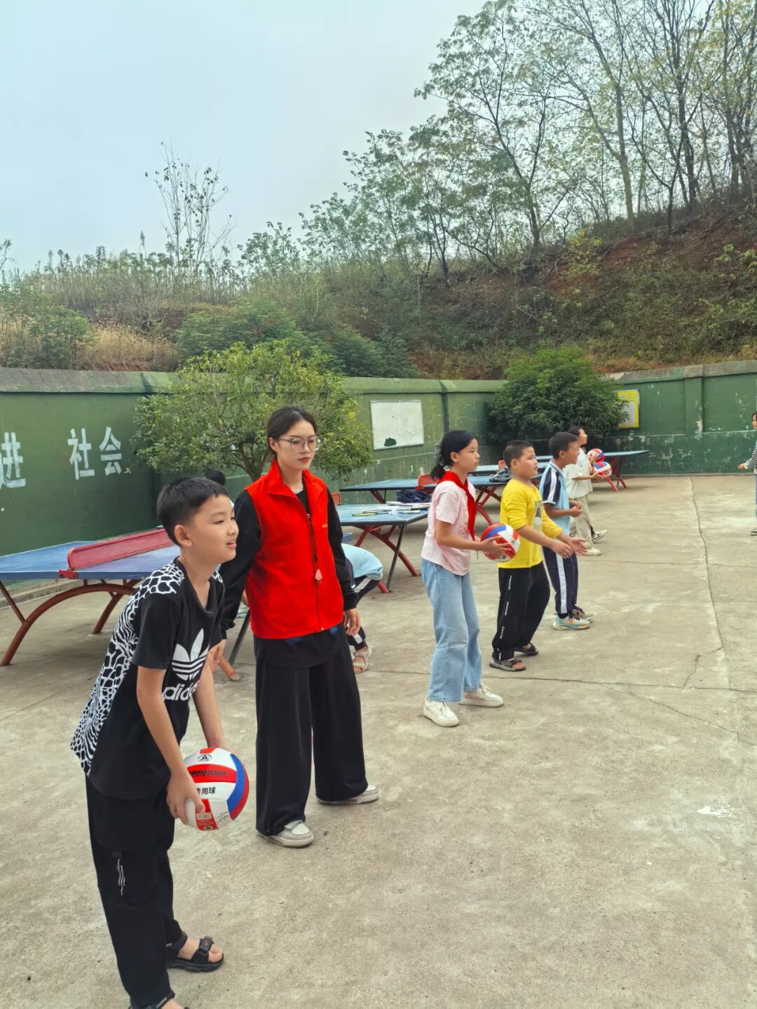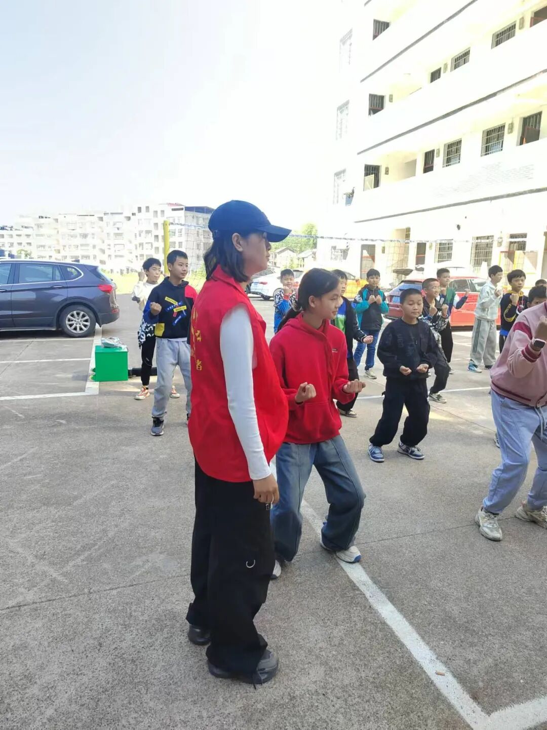 操场上,阳光正好,气氛热烈。体育支教课程成了一场活力的狂欢。冯樟老师组织的趣味游戏,让孩子们在奔跑、跳跃与合作中释放天性,笑声此起彼伏;刘吟霜老师的排球课上,孩子们认真学习垫球技巧,一次次地抛起、接住,展现了不服输的体育精神;龙婉瑜老师的活力啦啦操,以动感的节奏和优美的动作,点燃了全场的热情,孩子们舞动身姿,尽显蓬勃朝气;许郦老师的武术操则虎虎生风,一招一式间,不仅锻炼了体魄,更让孩子们在“嘿哈”声中感受到了中华武术的刚健与力量。